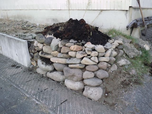 ※開墾した際に出てきた大量の石ころ、大家さんが積み重ねてました(地震がきたら、簡単に崩れそう・笑)