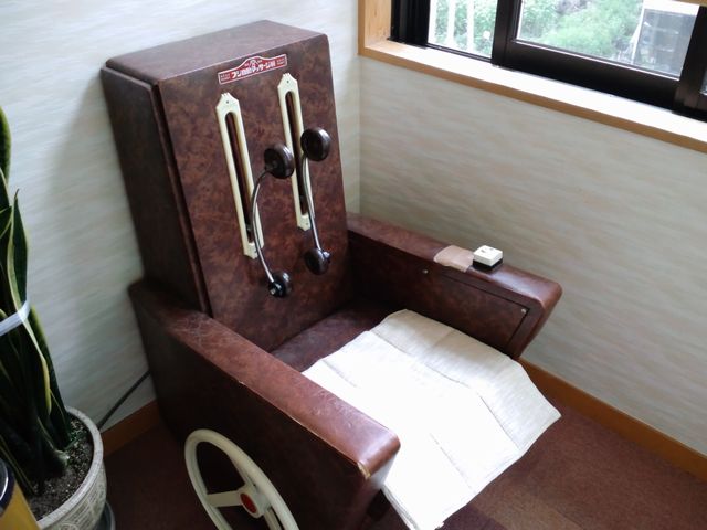 いや、しかし、この超レトロなサジマ椅子!子供とか、間違って首が間に挟まったら、超危険な拷問椅子になりそうです。