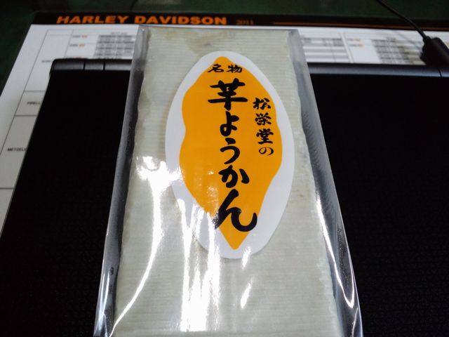 差し入れに頂きました!松栄堂の芋ようかん。芋、そして、甘いもの好きにはたまらない一品です!