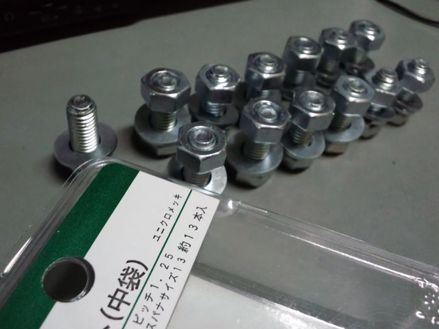 ま、約13本入なので、正確に13本では無いのでしょうが、普通はボルト&ナットじゃなきゃ使えない訳でして。