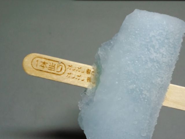 そんなガリガリ君ですが、よく見ると棒に当たりの文字が!やったー!(小さなしあわせ)