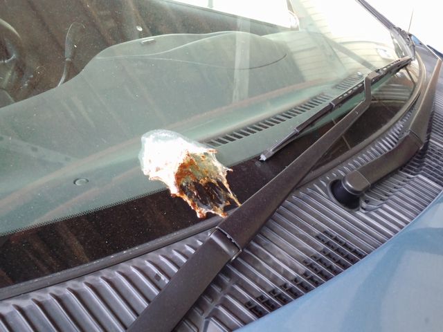 車の窓ガラスに、あり得ない位の大きさのうんこ爆弾を投下されました。