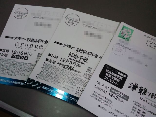 今日からの1週間、映画の試写会が3つも当たってまして・・・。