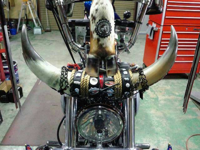 バイクに牛の角を付けるのは危険です。作業中、何度もぶつかり、何度も流血しかけました。