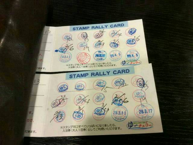 前回ゆ~チェリーに行った際、スタンプが満タンになっていたので、次回はタダで入れます(ヒャッホー♪)