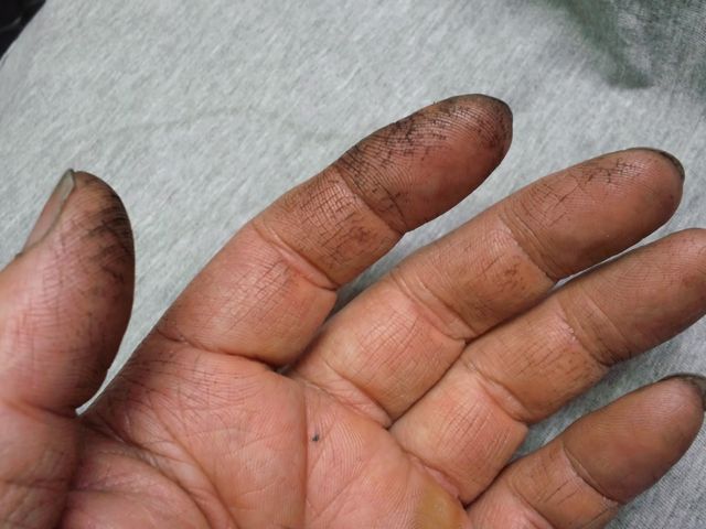 先日のニトリルグローブ湿疹(アレルギー?)事件の後は、素手で作業していた為、手が指紋の中まで真っ黒に。