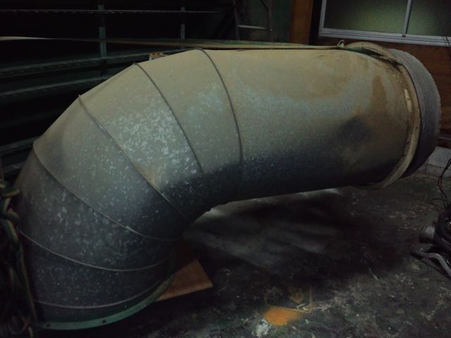 写真は古いマフラーのアップ!ではなく、工場の排気ダクト。ま、マフラーといえばマフラーでしょうか(笑)