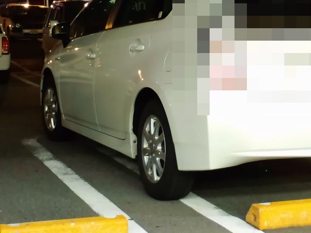 で、こんだけ枠をはみ出して停められると、こっちがちゃんと枠内に停めても、降りれません(太っているのもあって)