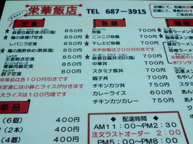 以前は、立花さん(肉そば)だけだったのが、その後、大もり家さん(ラーメン)そして、今日は写真の栄華飯店さん(中華)
