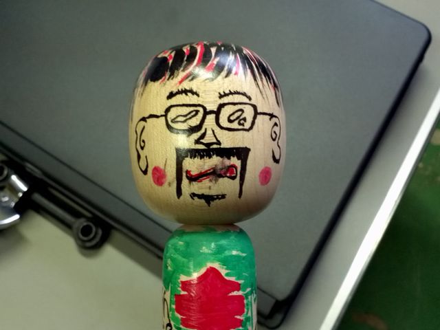 先日、友人より誕生日のプレゼントを頂きました。世界に一つのオリジナル・ヒゲメガネこけしです。