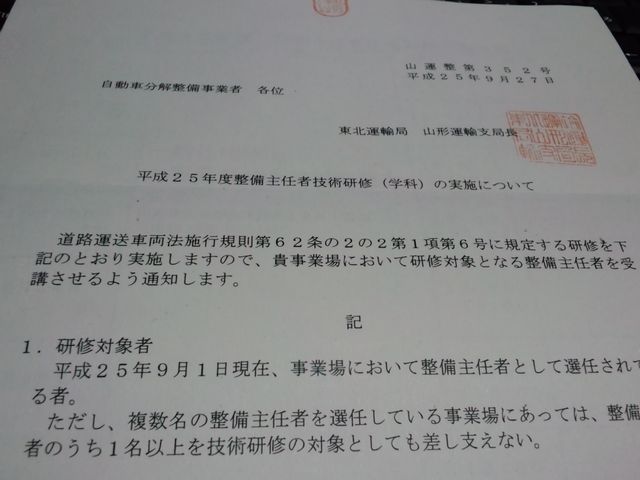また研修の案内が届きました・・・。先月も行ったのに・・・。今度は法令の研修です。