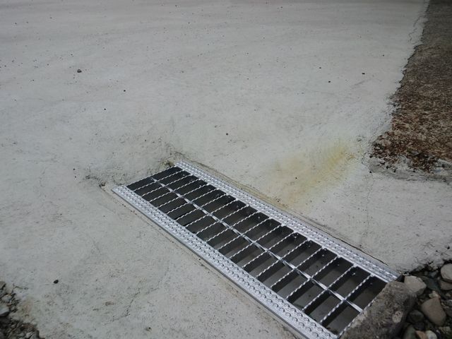ドブにハマって、足をぐねっちゃったりしないように溝蓋(グレーチング)をはめました。