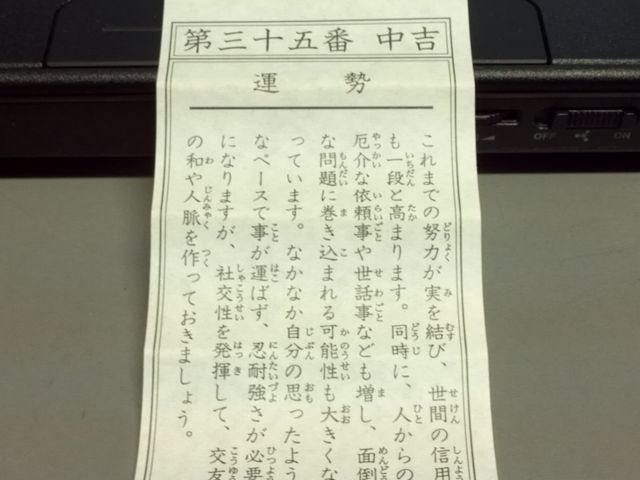 その気になる結果は中吉。そして、不思議と良く当たっているような・・・。ま、詳しいことは書き控えますが・・・。