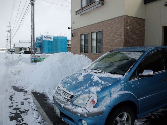 屋根に積もった雪が軒先から飛び出していますので、来られる方はご注意ください。